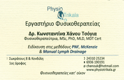 Εργαστήριο Φυσικοθεραπείας "Physio3kala" Δρ. Κωνσταντίνα Χάνου Τσόγια